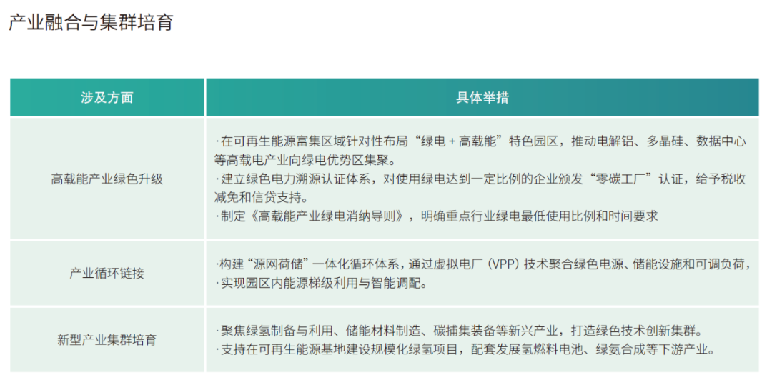 产业核心:吸引和培育高端载能产业(如电解铝、数据中心)和战略性新兴产业(如绿氢制造、光伏硅材),将能源优势就地转化为产业竞争力。通过“直接电气化”与“间接电气化”(绿氢),驱动工业深度脱碳。