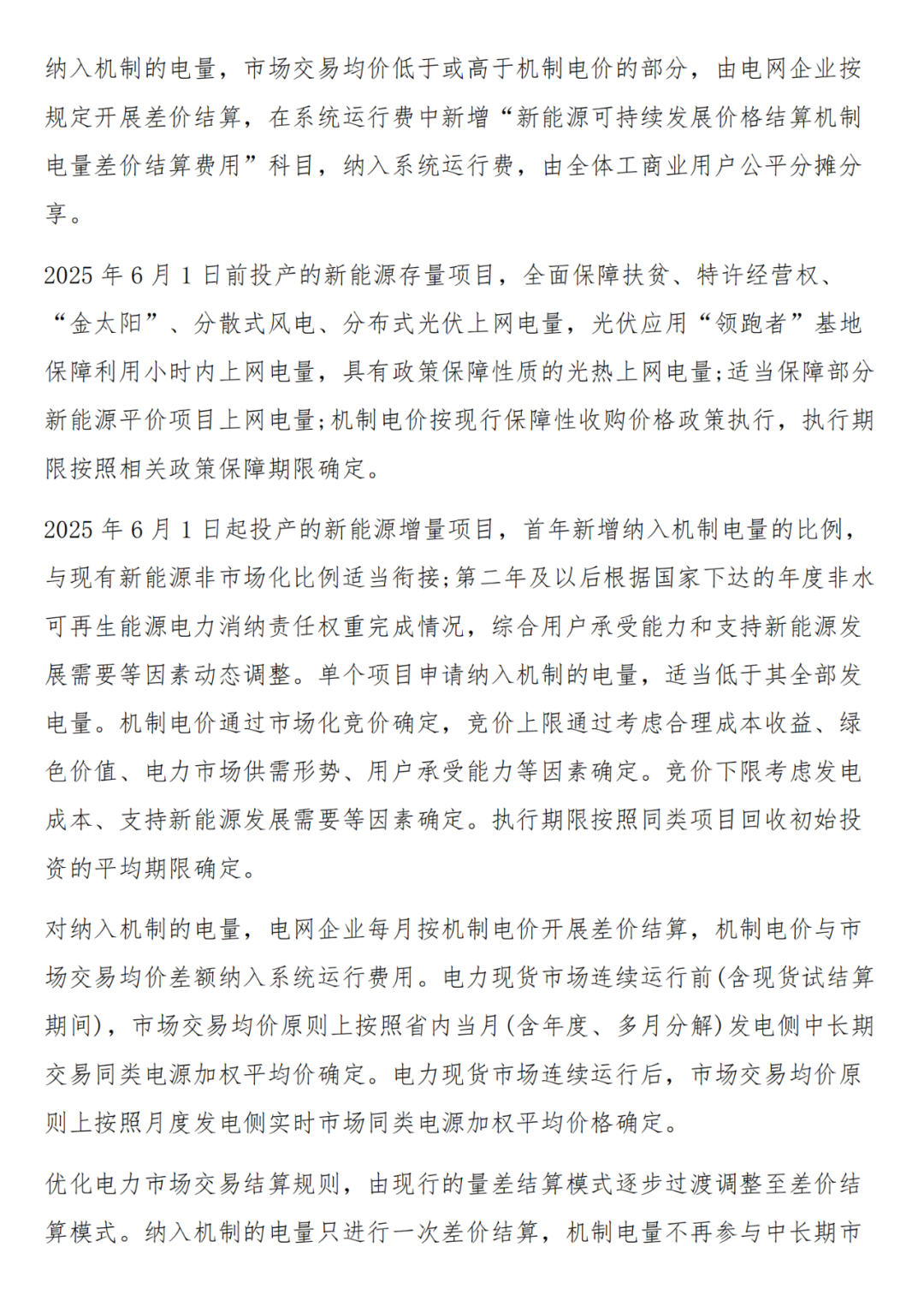 实施方案和细则文件体现的机制电价、机制电量等重点信息如下: