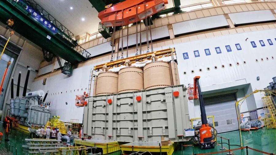 500千伏海上风电柔直变压器总装现场