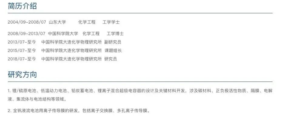 张洪章主要从事大规模储能电池关键材料与技术研究,研究方向包括全钒液流电池、锂硫电池、锂氟化炭电池、耐低温锂离子电池、超级电容器和铅碳电池等,关键材料研究涉及炭材料、电解液、隔膜、电极结构等。另外,张洪章现任洁净能源国家实验室(筹)高性能储能电池关键材料研究组(DNL1701)课题组长,他主持了多项国家级、省部级科研项目,授权发明专利六十多项。