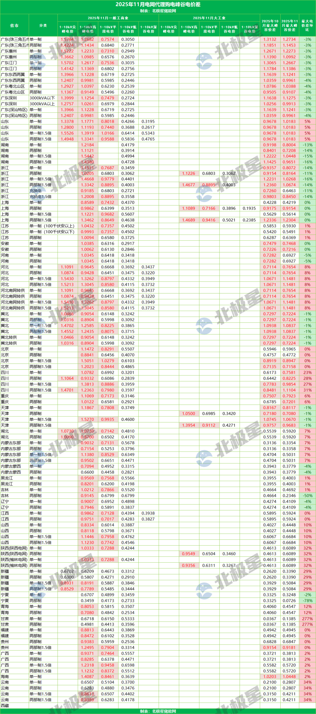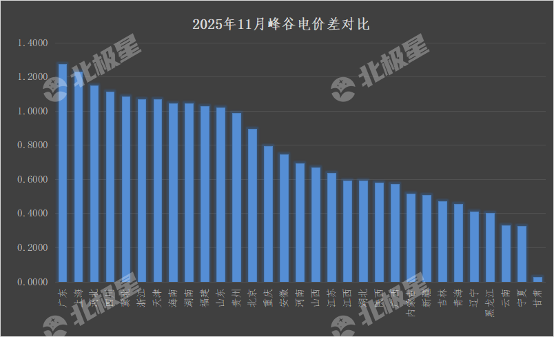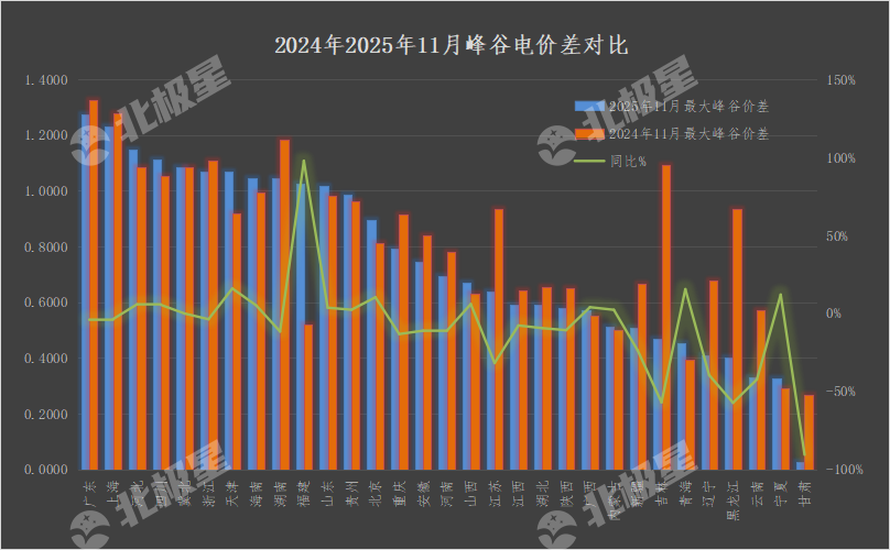 2025年9月峰谷电价差大幅回落!同比降58%!16省区超0.6元/kWh!