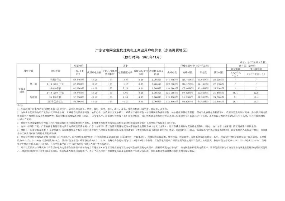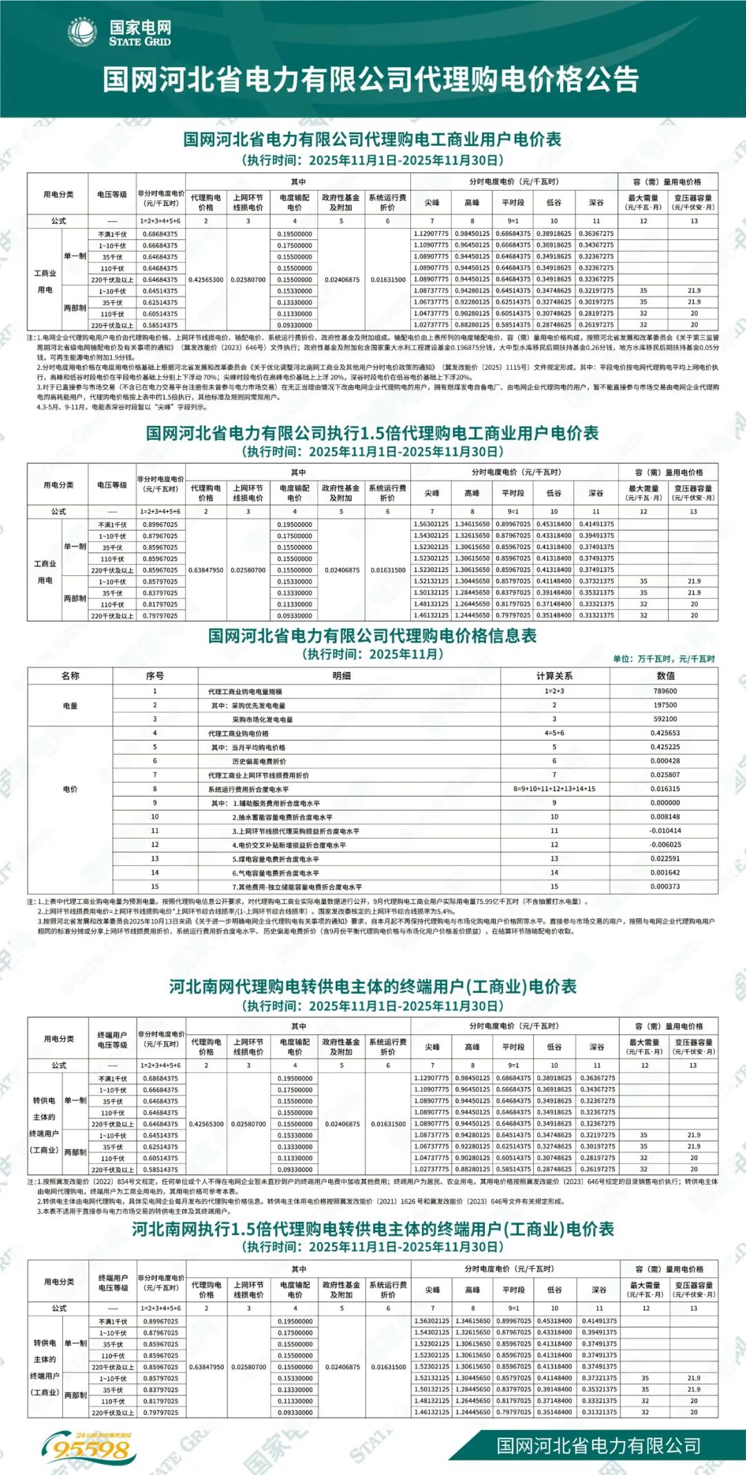 11月,广东、山东、河北、四川、湖北、新疆6地执行尖峰电价。山东、河北、江西3地执行深谷电价。山东与河北将在11月执行五段式电价。