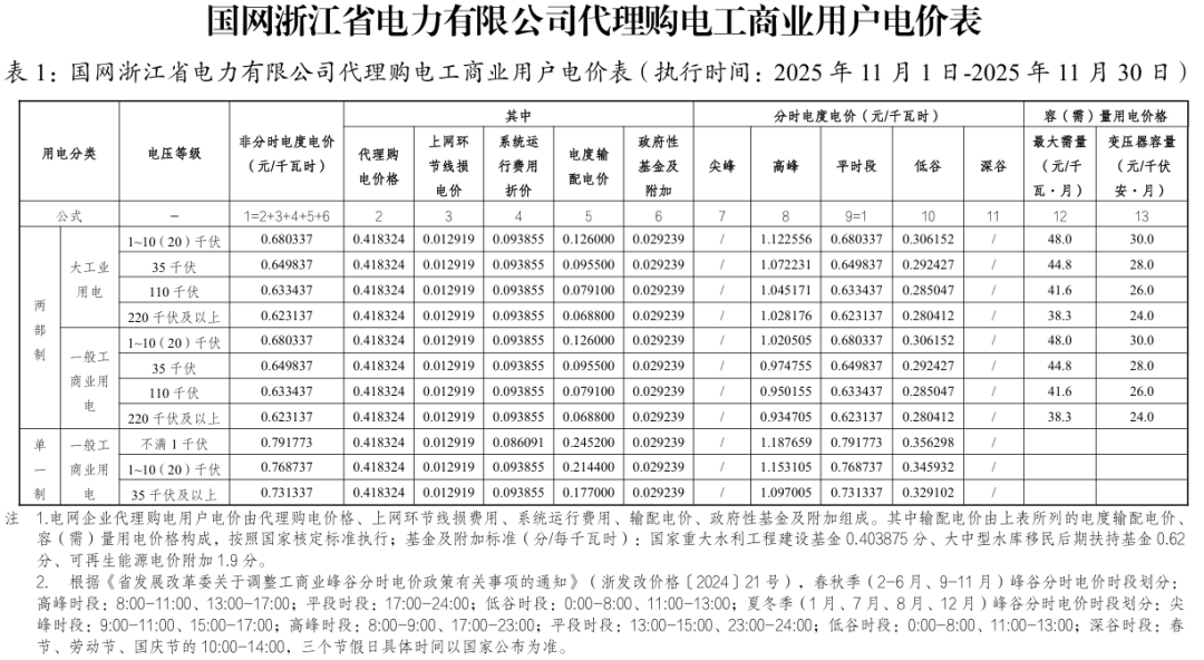 此外,与10月相比,浙江峰谷价差最大降幅可达16%。