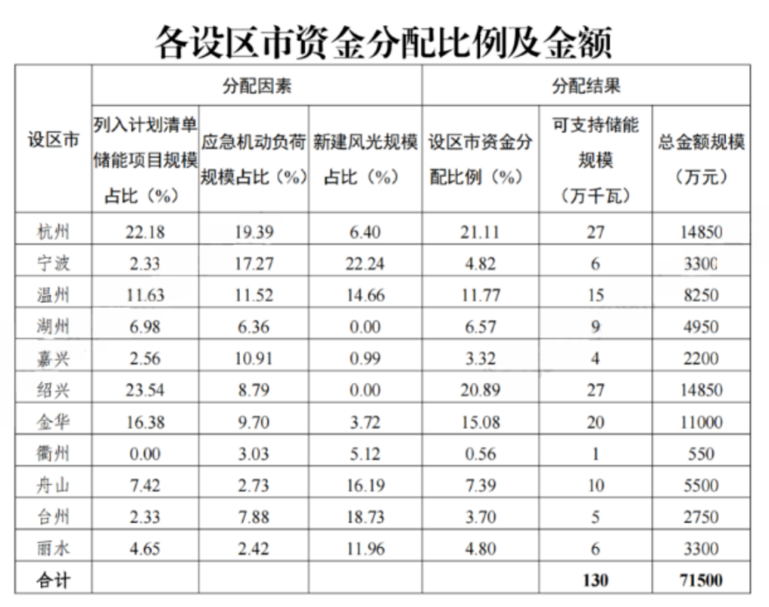 据北极星储能网了解,2024年4月浙江省发改委印发的《新型储能容量补偿资金分配方案》提到,对浙江省的11个区市列入项目建设计划,且在2024年6月30日前完成并网试验的电网侧新型储能项目开展补偿,总规模不超过130万千瓦。资金来源为历年电力直接交易结余资金,总额约7.15亿。2024-2026年补偿标准分别为200元/kW·年、180元/千瓦·年、170元/kW·年。