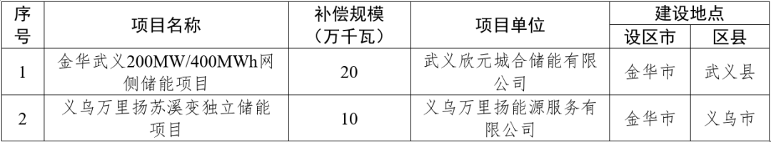 金华市发改委关于公示金华市电网侧新型储能容量补偿项目清单的通知