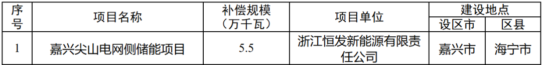 附:嘉兴市电网侧新型储能容量补偿项目清单