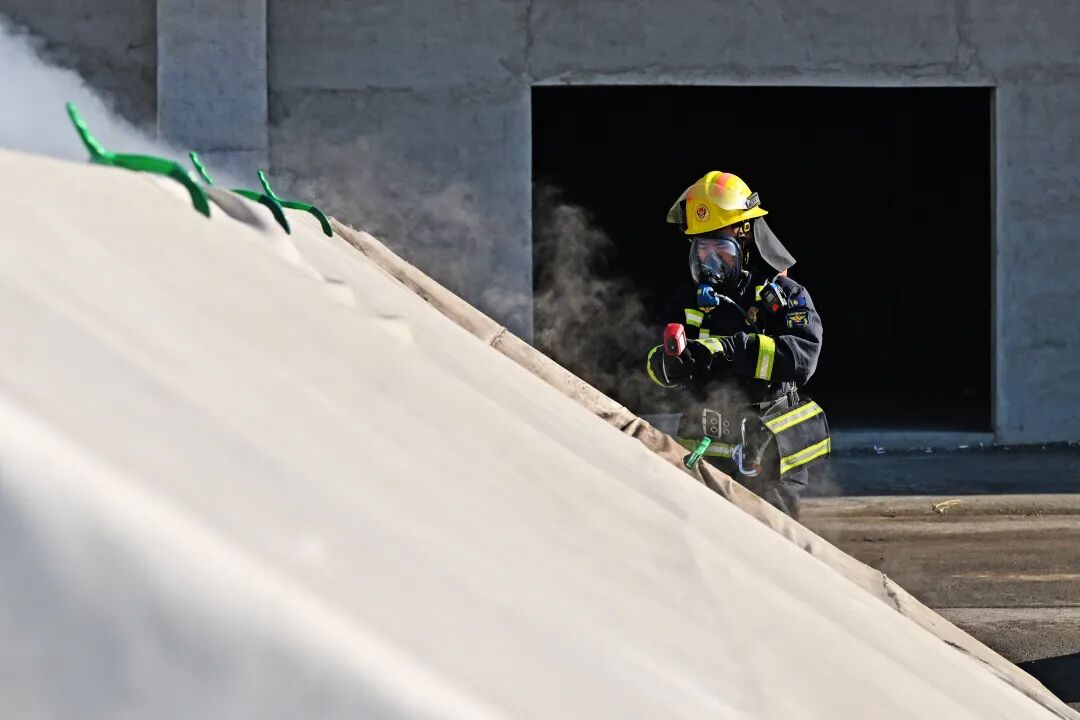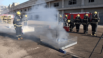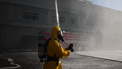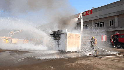 储能电站内部电池密集排布,决定了其一旦发生火灾将产生大量的热辐射,极易造成火势蔓延。本环节采取火灾冷却隔离战术,检验“以冷却抑制热失控、以泡沫阻断复燃”的实战有效性。