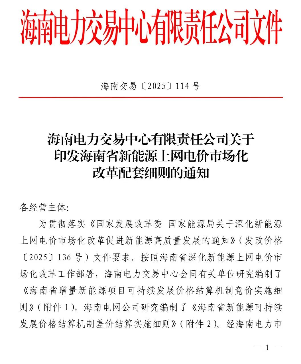原标题:海南电力交易中心有限责任公司关于印发海南省新能源上网电价市场化改革配套细则的通知