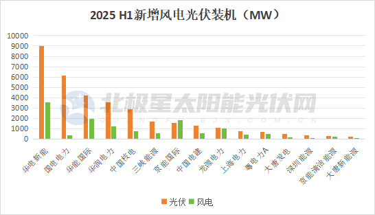 新增装机更能体现2025年上半年企业的开发侧重点,如华电新能、国电电力、华能国际、华润电力、中国核电、三峡能源、中国电建上半年光伏装机高于风电;而京能国际、龙源电力上半年新增装机的重点在风电产业。中广核新能源、云南能投、浙江新能、甘肃能源、广东建工、豫能控股及京运通,上半年风电无新增并网。