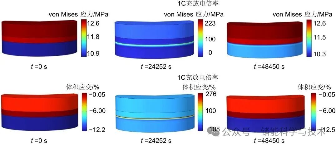 (2)SE-负极界面处的锂沉积引起的巨大体积应变,可以通过增加锂金属负极的厚度来降低电池整体的膨胀应力,能够有效减小充电过程中产生的膨胀应力。