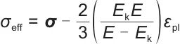 式中,Ek是运动硬化模型下的运动切线模量;εpl是塑性应变率。