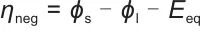 是负极交换电流密度;η是活化过电位,其定义为式(10)。
