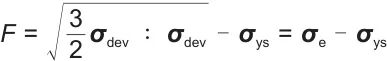 式中,σdev是偏应力张量;σe是von Mises应力;σys为屈服强度,可以表示为式(16)。