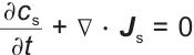 式中,cs是固相中锂离子的浓度;Js是锂离子的通量。