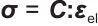 弹性部分的应力-应变关系需要同时满足化学势梯度与机械载荷的耦合作用,该应力可由弹性刚度矩阵C和弹性应变εel通过双重点积计算得出,见式(12)。