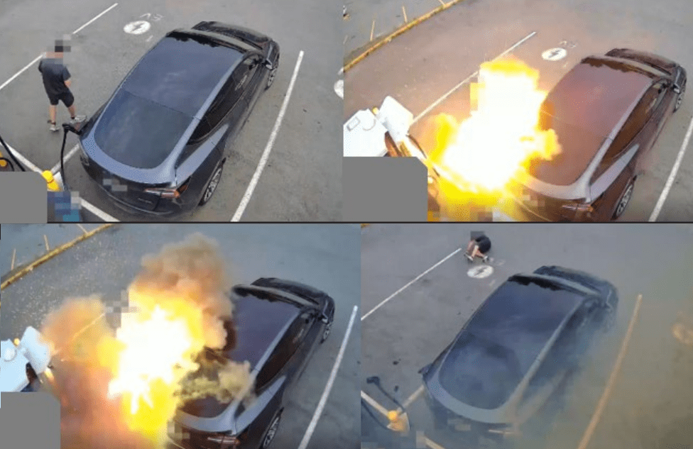 据悉,2024年8月16日,某特斯拉Model Y车主在加拿大不列颠哥伦比亚省霍普市一处充电站充电时发生爆炸,现场监控画面显示,电动汽车尾部突然爆炸,车主被冲击波推到,副驾同伴下车搀扶,所幸车主只受到轻伤。