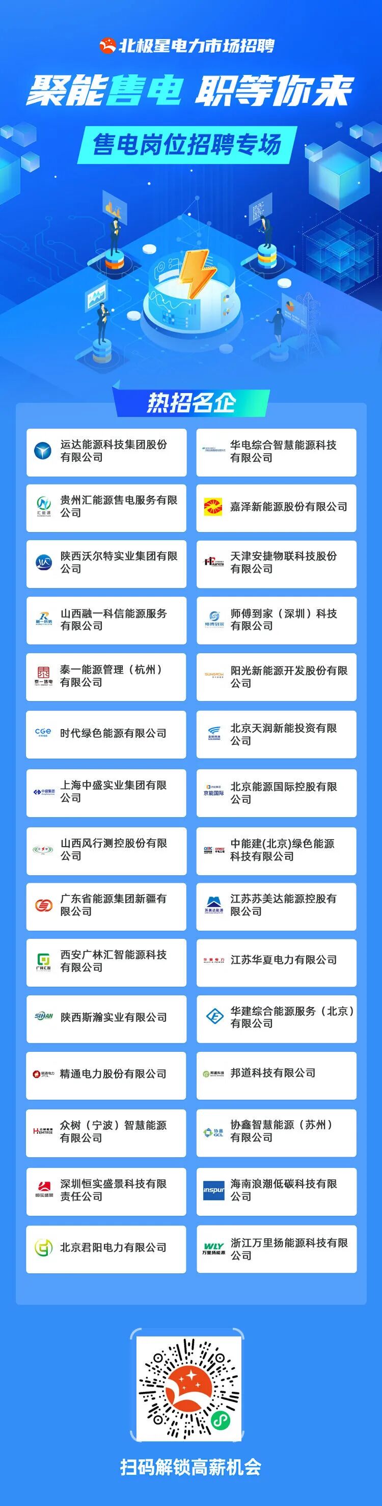 现在有哪些从事售电的企业?北极星整理了下属企业名单可供参考!(扫码可获取在招岗位要求及薪资详情!)