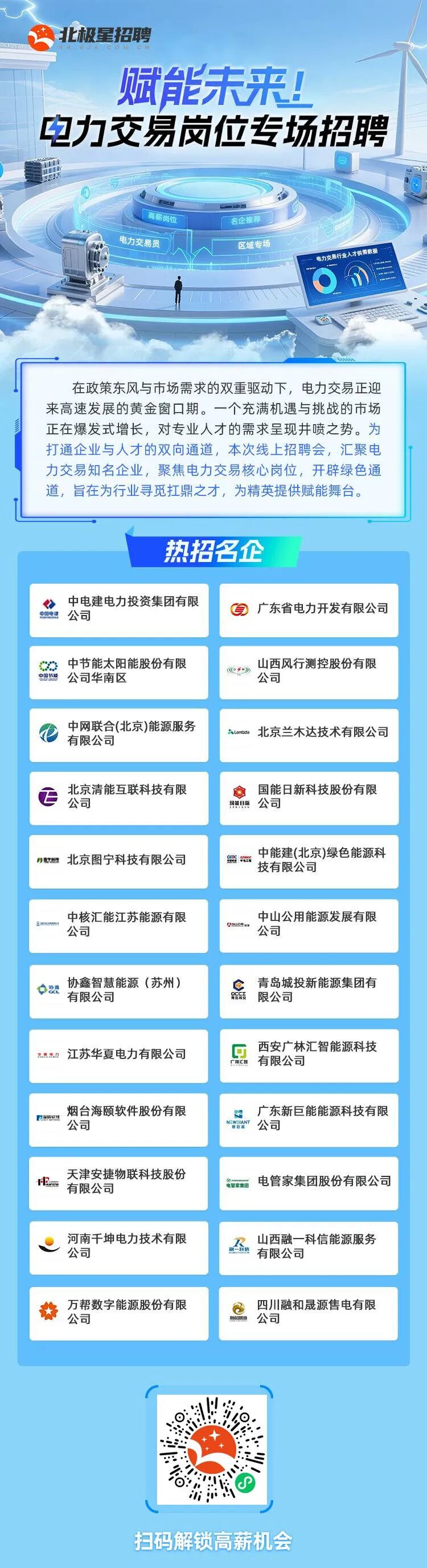 电力能源央企、新能源头部企业、虚拟电厂和售电行业标杆纷纷下场 “抢人”,高薪加码急揽熟稔市场规则、手握交易经验的专业人才。这波市场红利期,其实也是从业者跳槽转行、实现职业生涯跃升的黄金机遇!