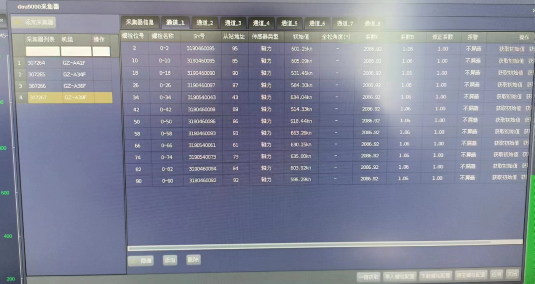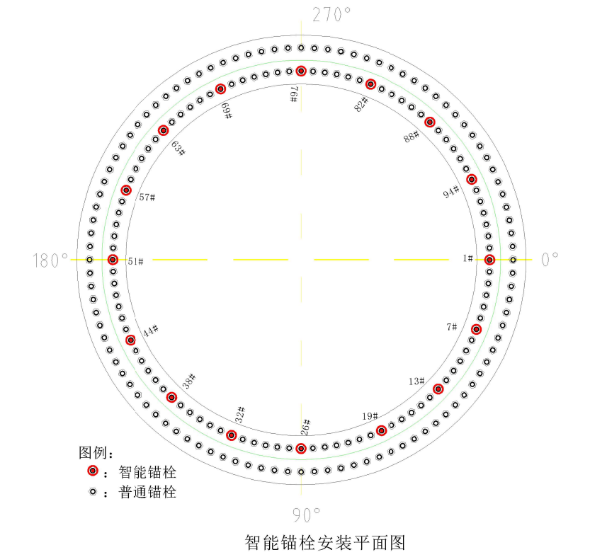某风电场双馈风机安装了MS9000智能锚栓监测系统。塔筒高度100m,基础直径4460mm。