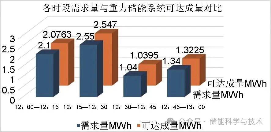 在上述1小时的时间内,每个时段需求的能量和重力储能系统可以达成的能量对比图如图15所示,通过计算得到重力储能系统运行过程中的最大误差为1.3%。