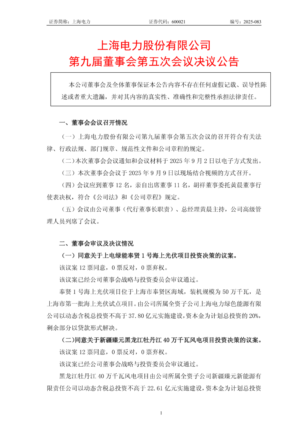 北极星风力发电网获悉,9月10日,上海电力发布第九届董事会第五次会议决议公告。