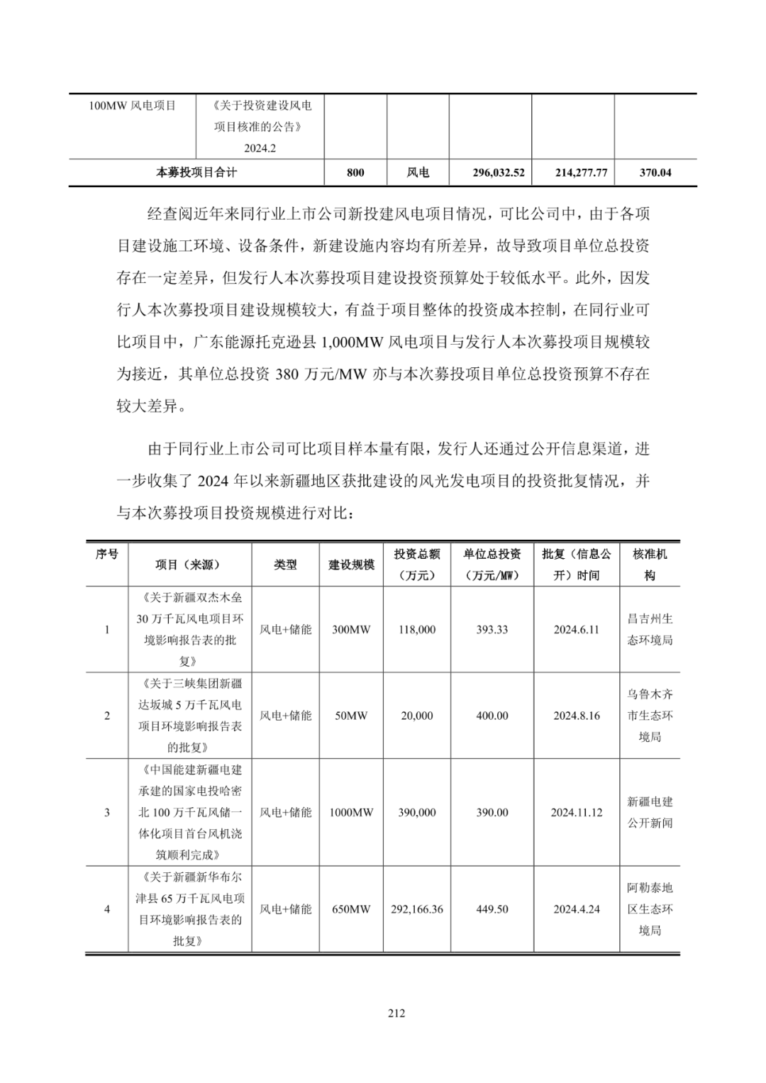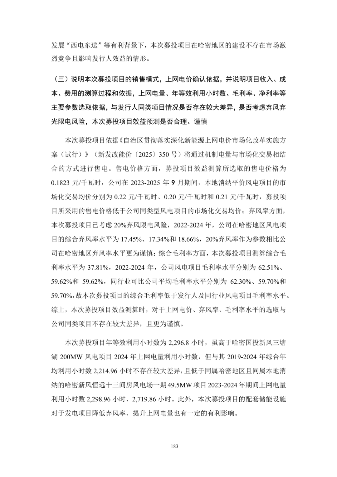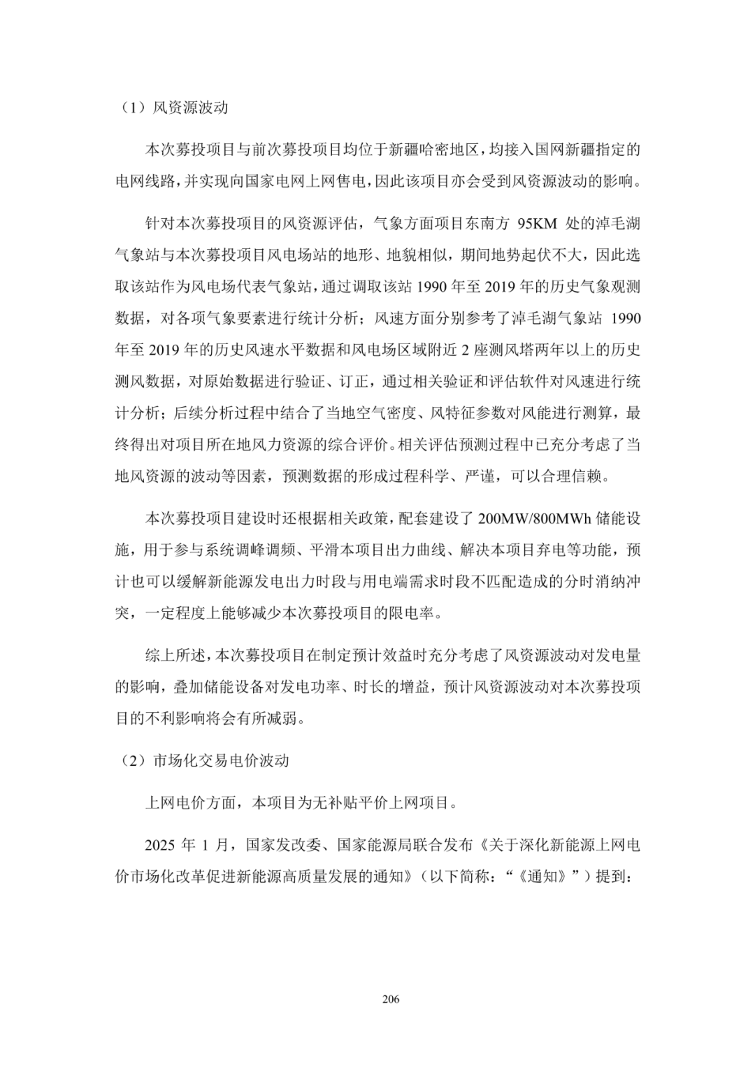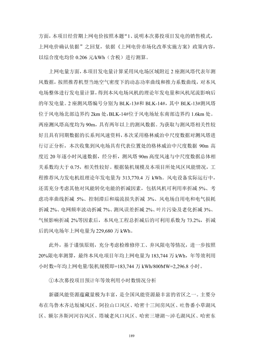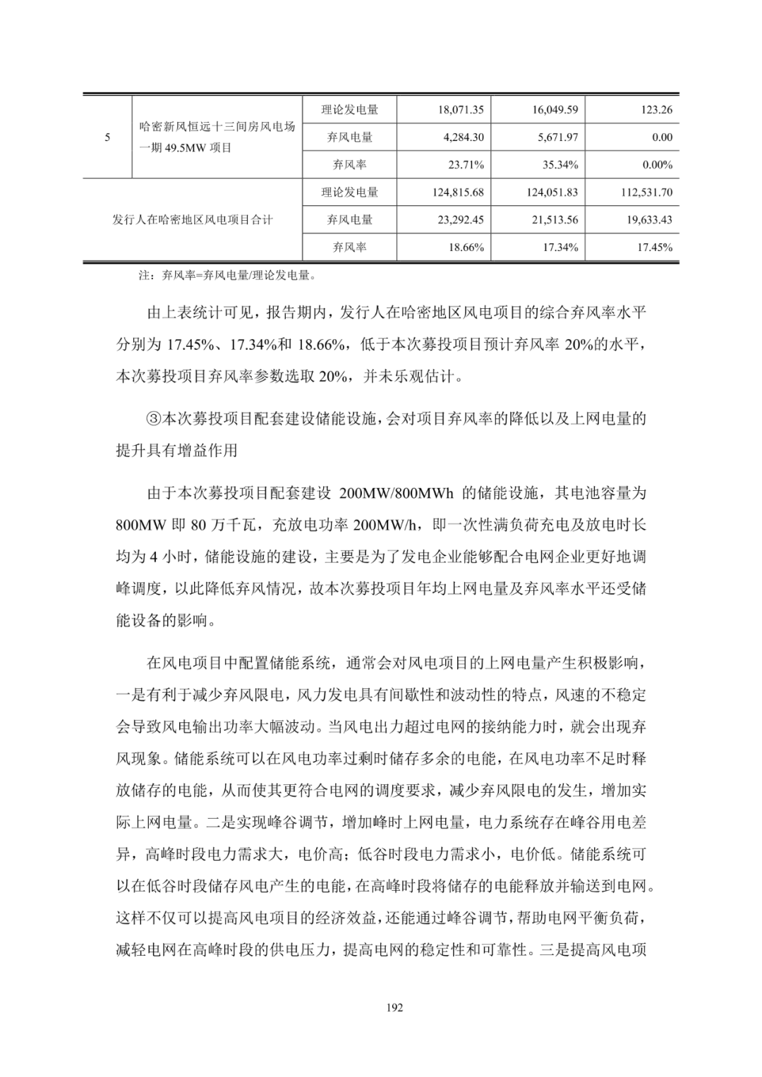而本次募投项目的差异在于将配套建设200MW/800MWh的储能,即一次性满负荷充电及放电时长均为4小时,储能设施的建设,主要是为了发电企业能够配合电网企业更好地调峰调度,以此降低弃风情况,故本次募投项目年均上网电量及弃风率水平还受储能设备的影响。