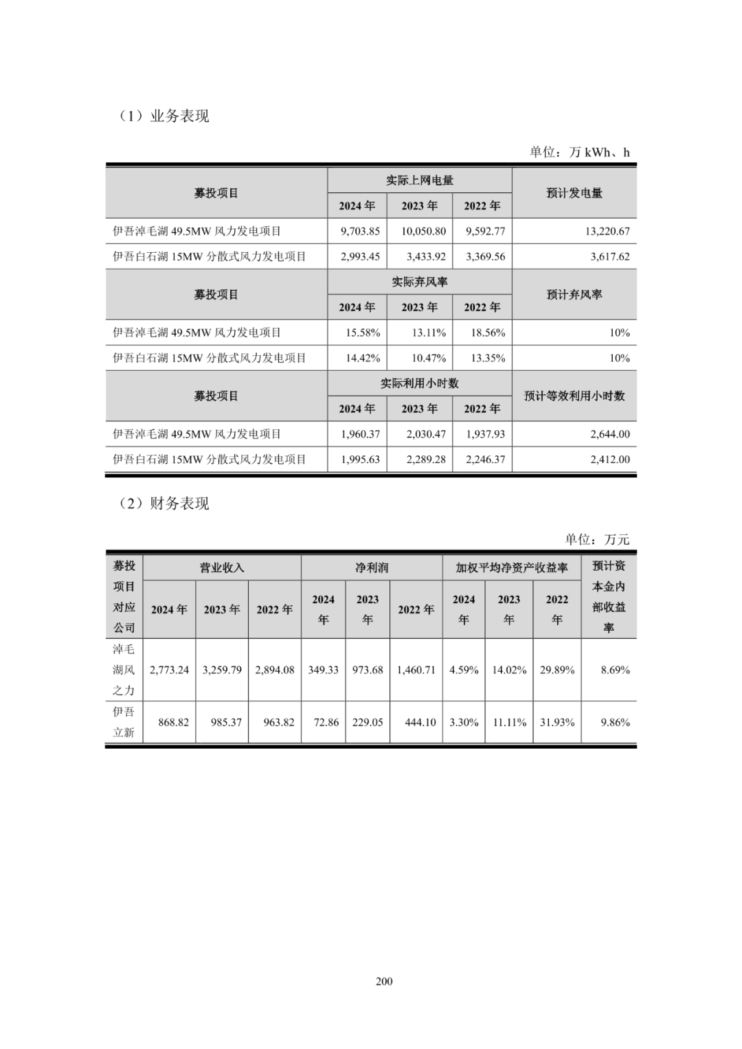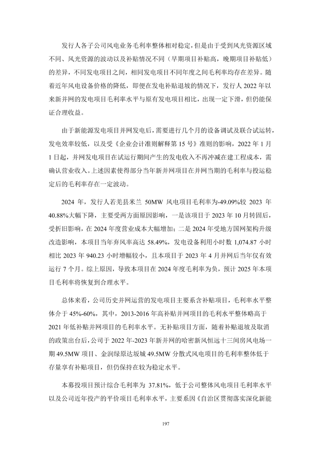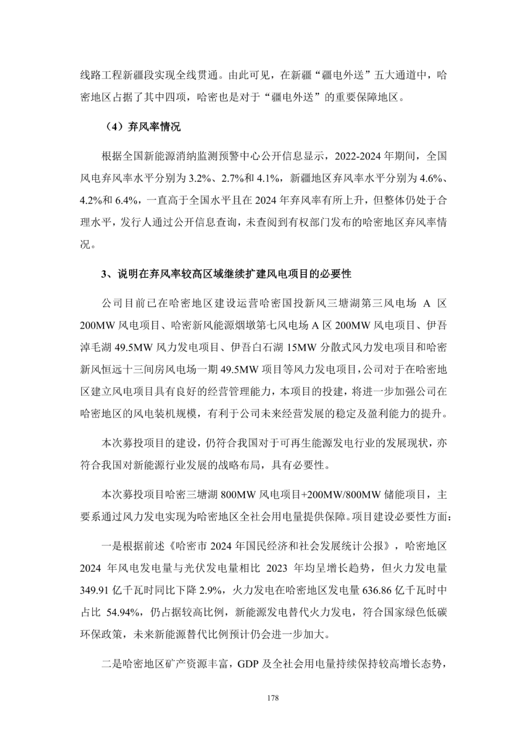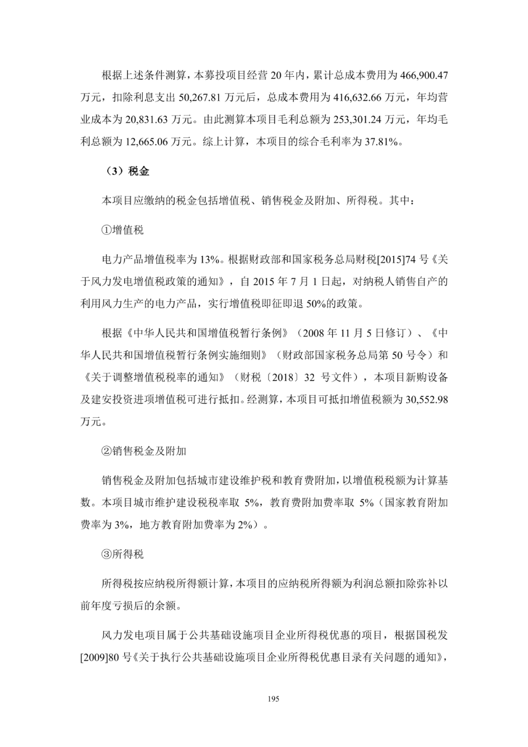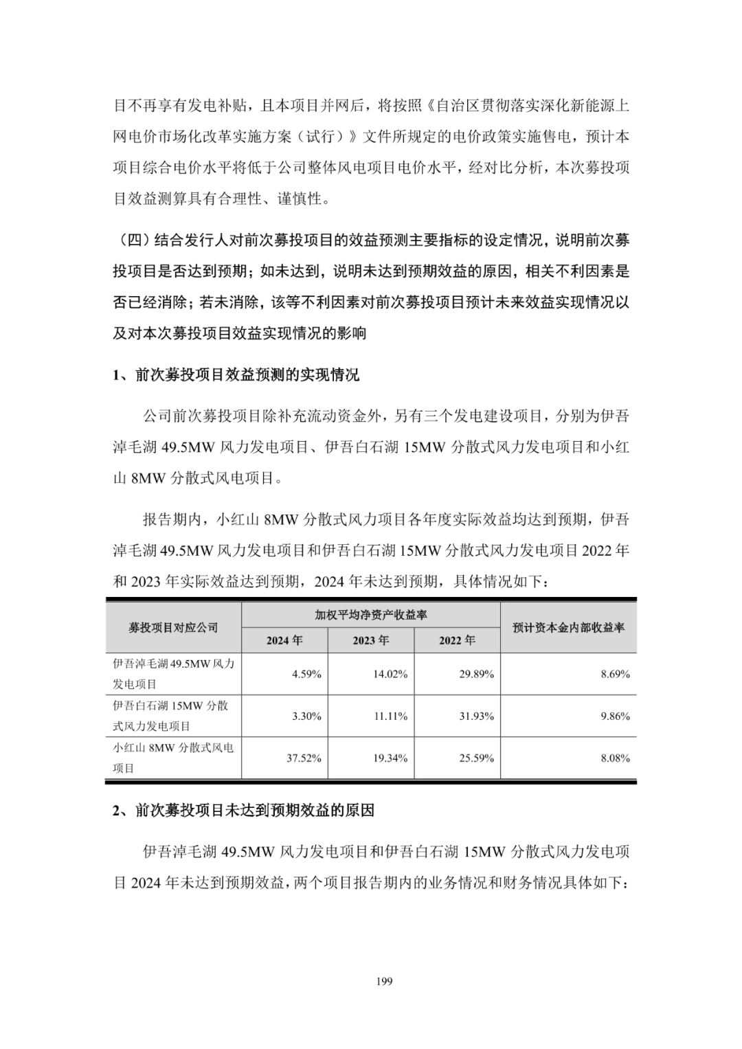 而本次募投项目的差异在于将配套建设200MW/800MWh的储能,即一次性满负荷充电及放电时长均为4小时,储能设施的建设,主要是为了发电企业能够配合电网企业更好地调峰调度,以此降低弃风情况,故本次募投项目年均上网电量及弃风率水平还受储能设备的影响。