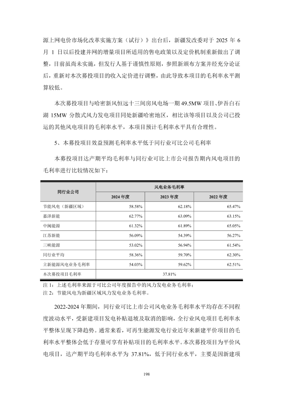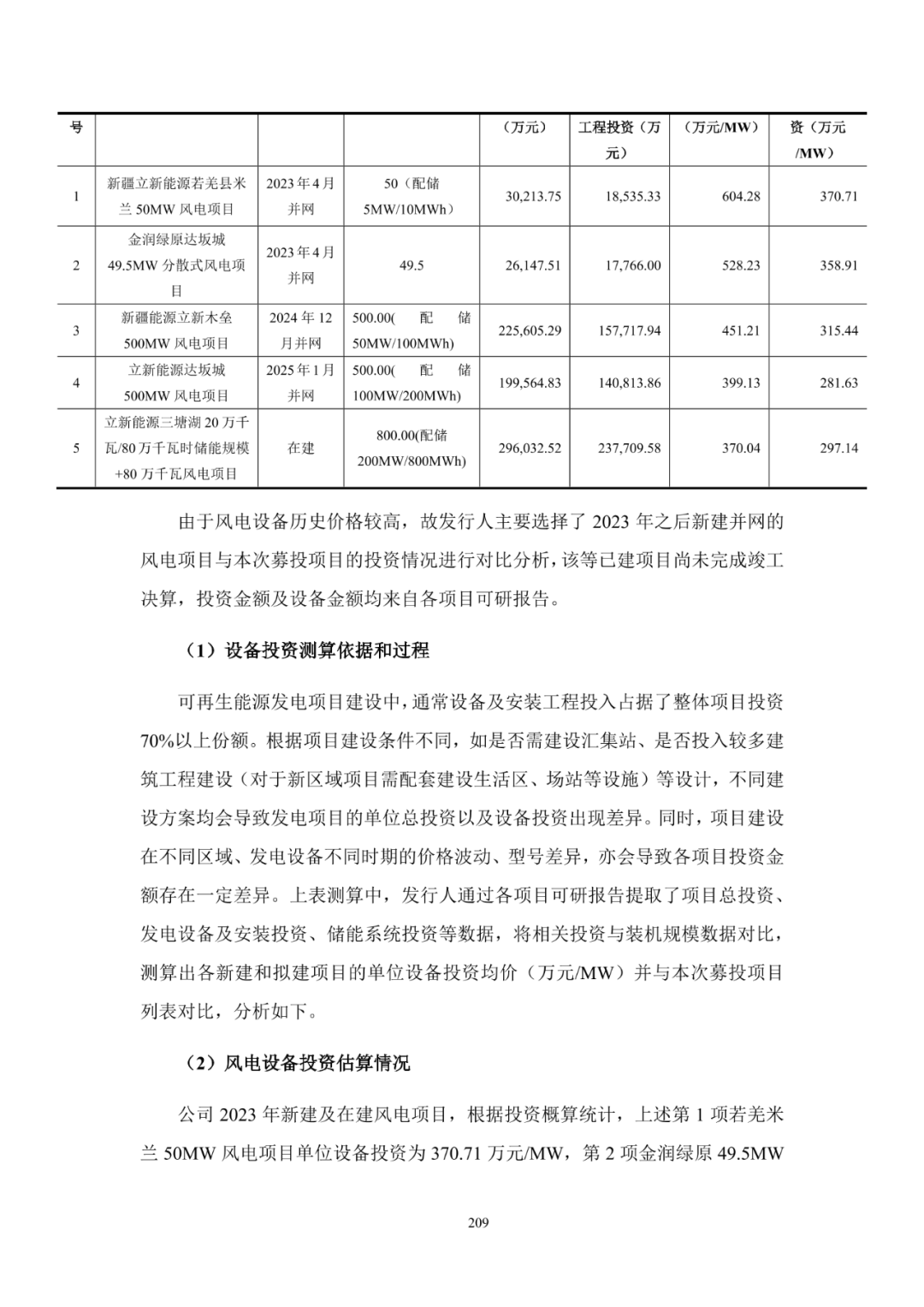 立新能源2022年、2023年及2024年均进行了风力发电机组采购合同的签署,采购合同均价分别为226.95万元/MW、201.49万元/MW及165.71万元/MW,风力发电机组采购价格持续下降,2024年采购均价较 2022年下降 26.98%。