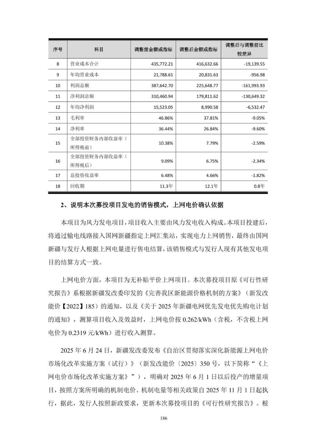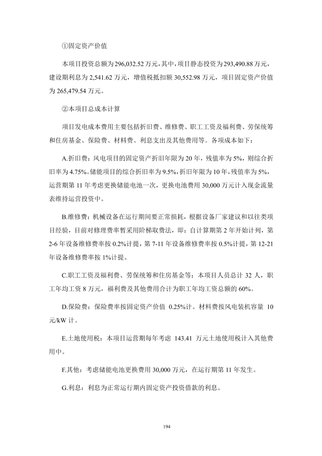 在项目折旧费方面,立新能源指出:风电项目的固定资产折旧年限为20年,残值率为5%,则综合折旧率为4.75%。储能项目的综合折旧率为9.5%,折旧年限为10年,残值率为5%,运营期第11年考虑更换储能电池一次,更换电池费用30000万元计入现金流量表维持运营投资中。