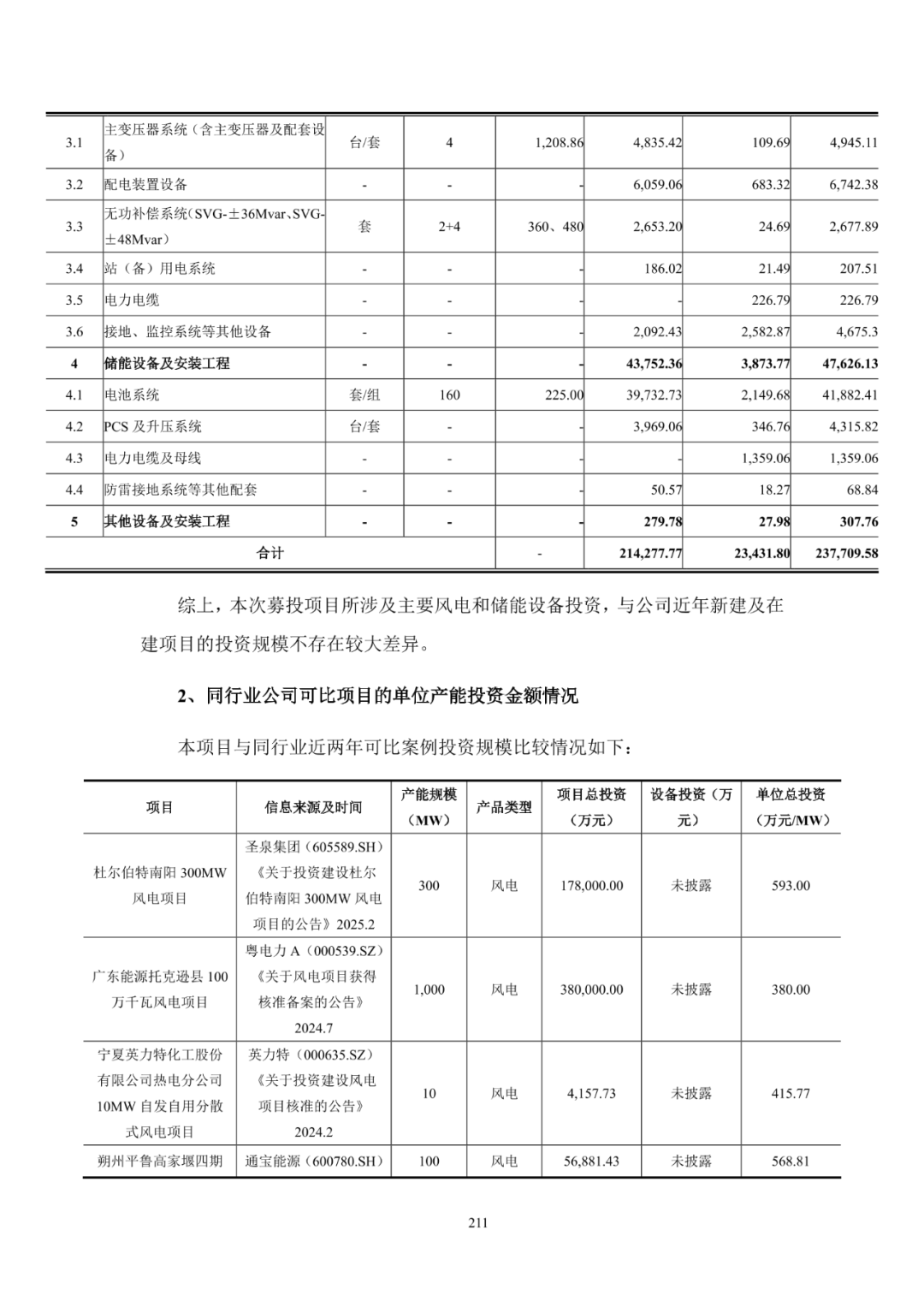 根据立新能源最新公告,企业募投的新疆哈密三塘湖800MW 风电项目+200MW/800MW储能项目,投资总额将由311682.86万元调减至296032.52万元,下降原因主要系根据巴里坤追风、双登股份2025年5月签订的《储能系统设备采购合同》、可研机构新出具的《可行性研究报告》,储能设备由原预计58054.33万元调减至43752.36万元。