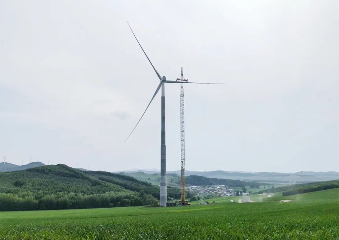 中船科技集贤县20万千瓦风电项目位于黑龙江省双鸭山市集贤县境内,安装40台单机容量5MW机组,风机轮毂高度为160m,塔型为钢混塔架。今年9月,该项目首批机组已实现并网发电,目前,正在推进全场机组并网调试工作,力争在节点前完成全容量并网目标。