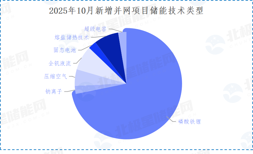 从电池技术路线来看,磷酸铁锂电池仍是主流,同时全钒液流,熔盐储热,固态电池,压缩空气,钠离子电池等电池技术在10月均有显现。其中,10月9日,大规模压缩空气储能示范项目在内蒙古乌兰察布化德县成功并网发电,该项目新建一座60MW/240MWh新型储能电站,采用水/导热油双工质混合的宽温域中温技术路线,包含空气压缩、蓄热、储气和膨胀发电四大子系统。