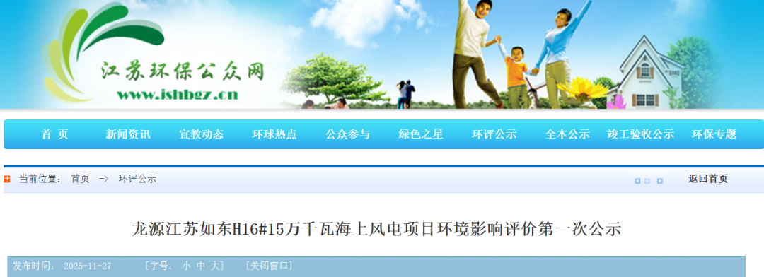 龙源江苏如东H16# 15万千瓦海上风电项目: