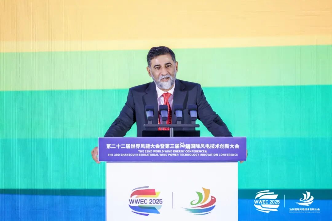 Irfan Mirza在致辞中表示,本届大会在汕头的召开具有深远意义,既是中国第三次举办世界风能大会,也见证了中国风电产业二十年来的跨越式发展。如今,中国从快速成长的风电市场跃升为全球风电强国,在技术、规模、海上开发、数字化与供应链等方面引领世界。创新是应对未来能源挑战的关键,必须突破传统框架,推动能源生产方式的根本性变革,将风电、光伏、储能、绿氢、数字系统等整合为智能化、有韧性的能源生态系统。期待通过高端对话、技术论坛及社区参与指南发布等议程,推动公正包容的能源转型,让风电惠及全球每个角落。