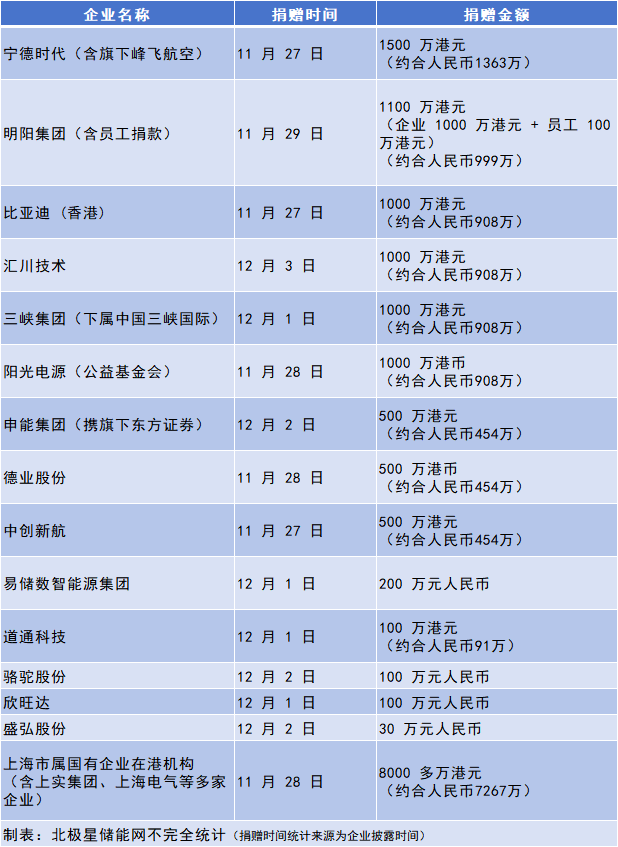 大火无情,储能有爱!这些储能相关企业的行动,展现了企业的社会责任与担当,它们用实际行动和香港同胞同心守望,共克时艰。