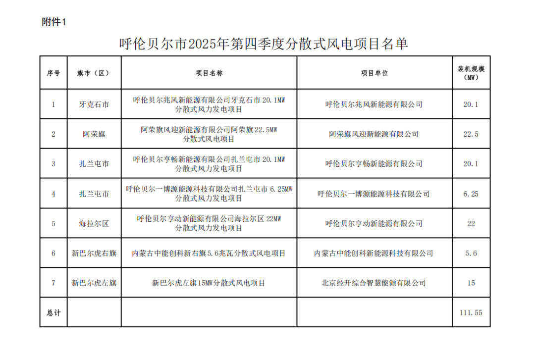 附件:1.呼伦贝尔市2025年度第四季度分散式风电项目名单