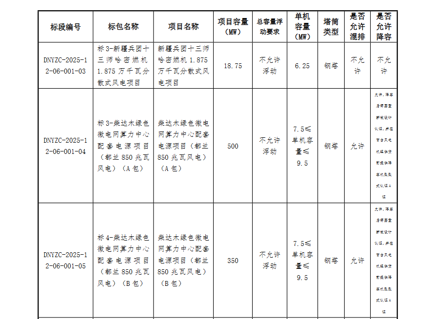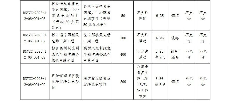 公告显示,此次采购容量3106.25MW,共17个标段,28个风电项目,单机容量5MW~9.5MW。