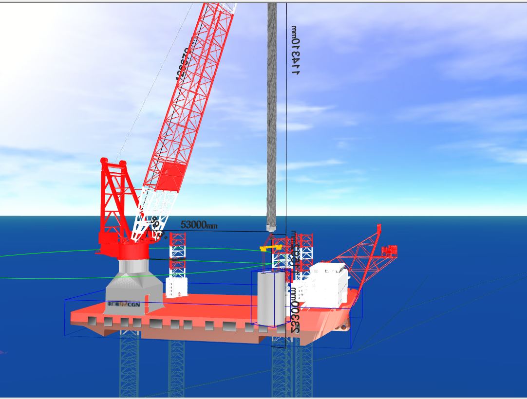 更为重要的是,平台强大的三维施工仿真功能,可实现海上基础施工、风机吊装、海上升压站吊装的三维仿真,实现船舶站位、船机动作、碰撞检测、三维标注、最小距离测量等功能,并按照标准规范,实时显示吊装载荷率等工况信息。