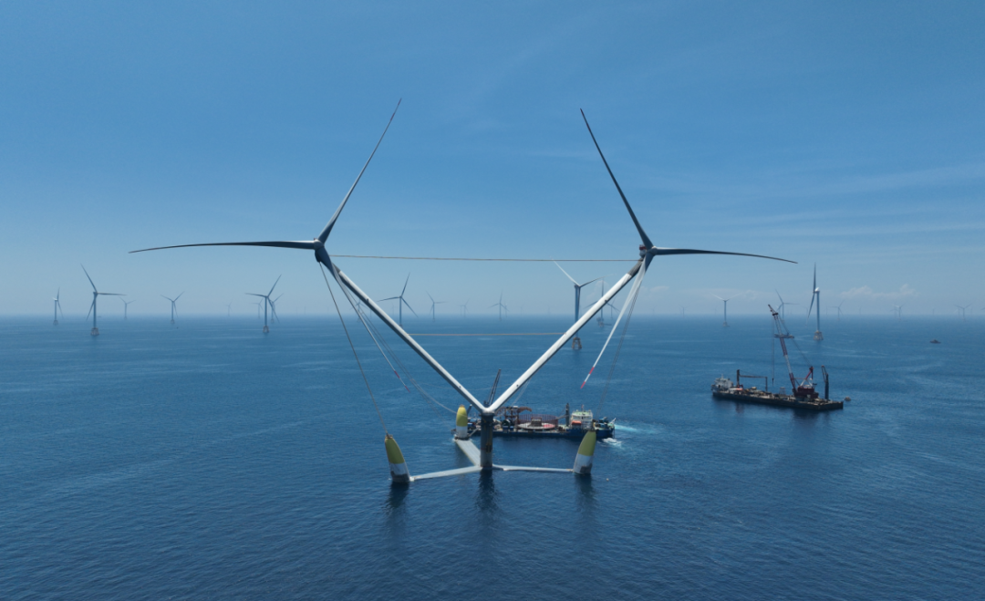 2024年12月,全球单机容量最大、技术最前沿的双转子漂浮式风电平台——“明阳天成号”在广东阳江海域正式并网发电,树立了全球深远海风电开发的新标杆。该项目主体于2024年8月完成海上施工,同年12月圆满投运。
