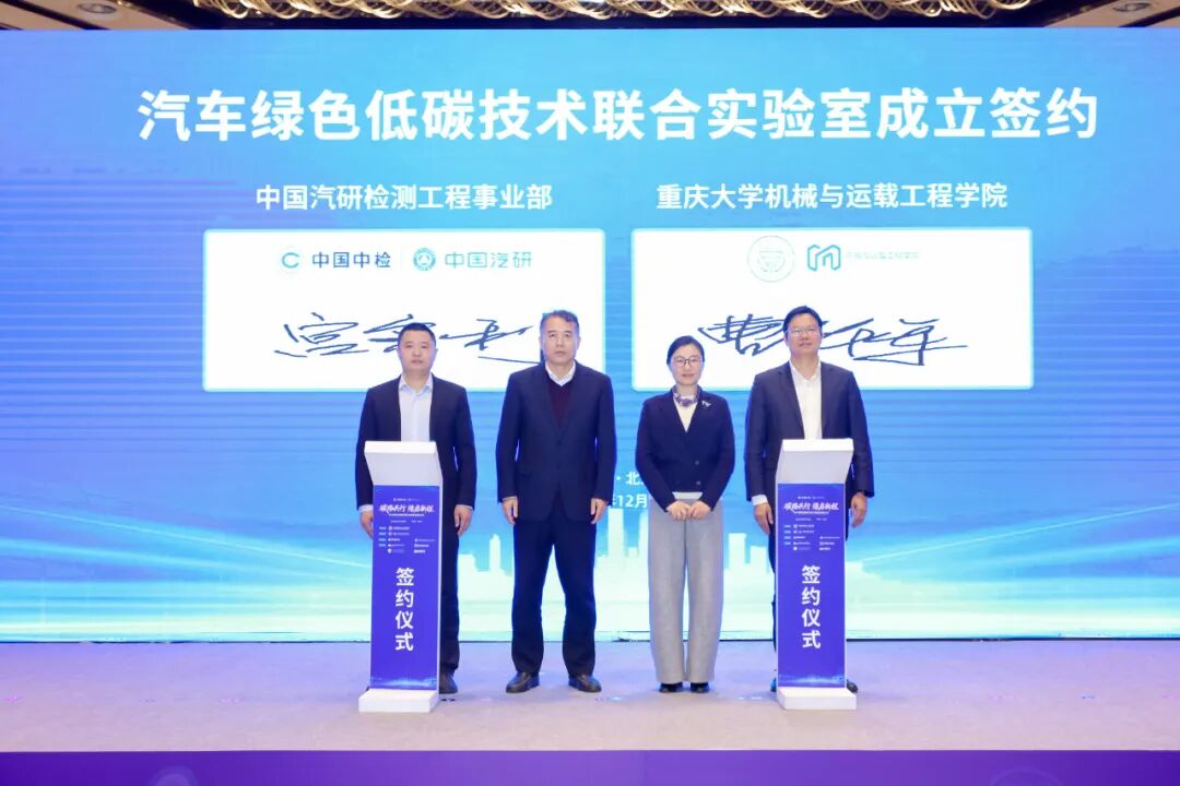 会议以“碳路共行,绿启新程”为主题,聚焦“双碳”战略下的政策走向、标准体系建设与产业低碳实践,来自政产学研用及国际组织的600余名代表现场参会。会议期间,中国汽研检测工程事业部与重庆大学机械工程学院共建“汽车绿色低碳技术联合实验室”正式签约,将为车企提供从基础研究到工程应用的系统化绿色低碳技术支撑;同时中国质量认证中心与中国汽研联合发布了汽车领域碳足迹成果,进一步推动汽车产业的低碳实践。