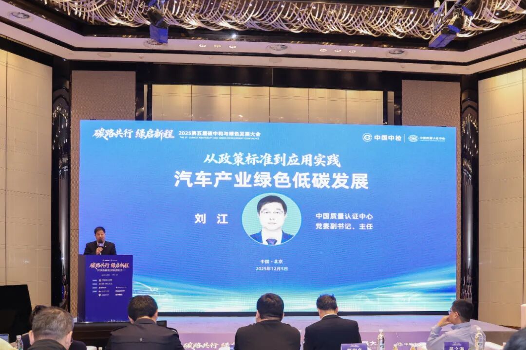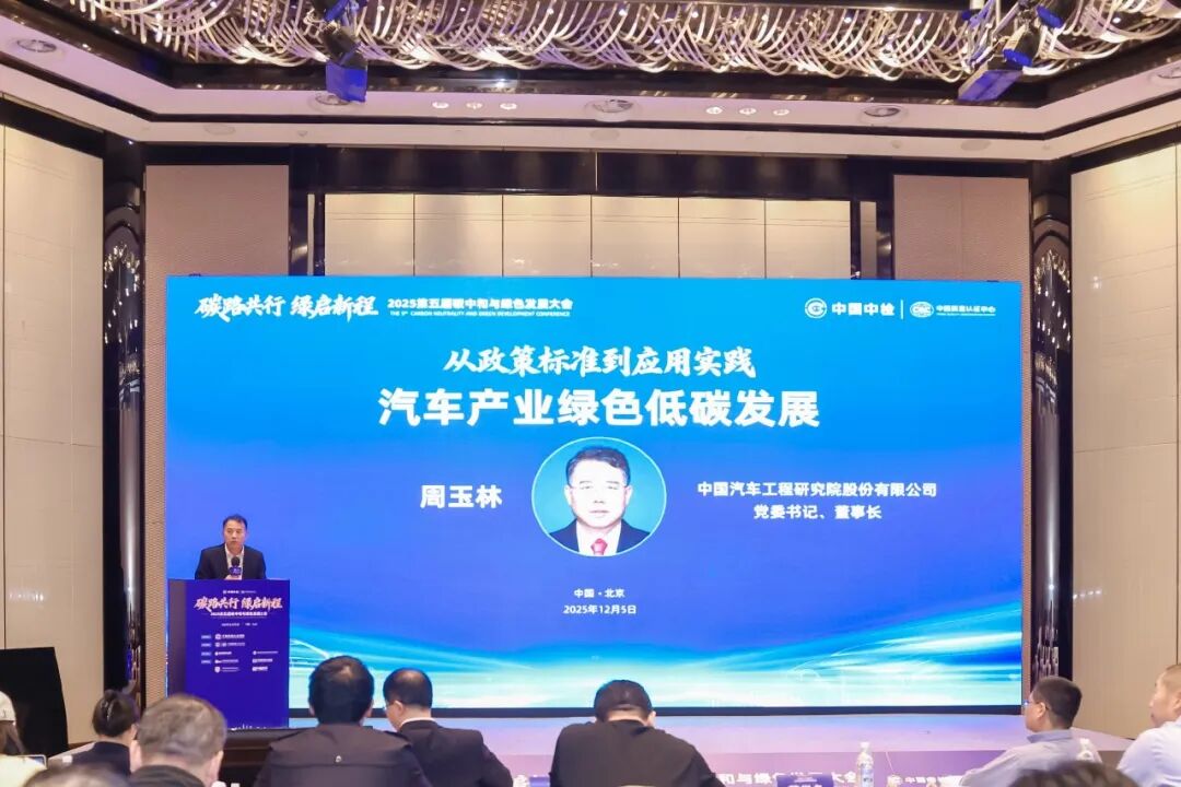 12月5日,由中国质量认证中心主办的“2025第五届碳中和与绿色发展大会”在北京召开。中国汽车工程研究院股份有限公司(以下简称:中国汽研)党委书记、董事长周玉林受邀出席。