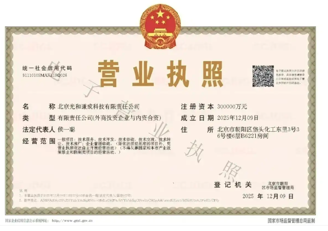 从流传的营业执照来看,该公司成立于2025年12月9日,注册资本30亿元,企业类型为外商投资企业与内资合资,法定代表人为侯一聪,经营范围为技术开发、技术咨询、技术交流、技术转让、技术推广以及企业管理咨询。