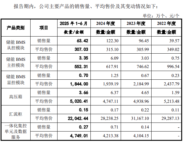 从高特电子销售业绩来看,储能BMS模块在报告期内销量分别达到41万个、100万个、129万个,其中2025年销量为67.47万个。其中在2025上半年,其储能BMS从控模块平均售价约307.03元/个,主控模块售价552.31元/个,显控模块售价1844元/个。另外其高压箱平均售价略有上涨为5020.41元/个,一体化集控单元与数据服务的平均售价为4749.01元/套。