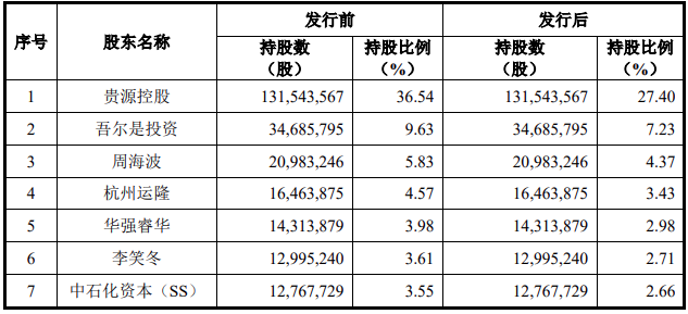 2025年3月,高特电子完成了第八次股份转让,当时股份转让价格确定为12.02元/股,对应企业估值已达到43.27亿元。截至目前,高特电子共有39位股东,其中贵源控股持股比例高达36.54%,另外国有企业中石化资本、昆仑资本分别持股3.55%和1.77%。