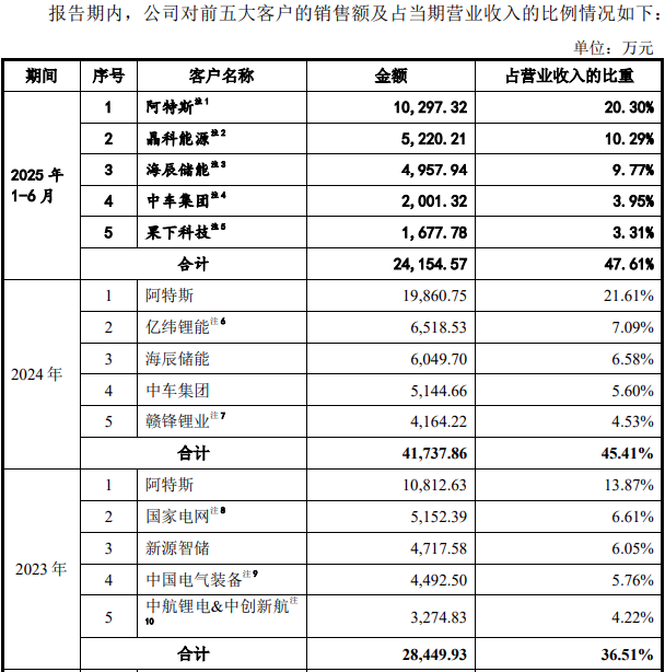 相关产品及服务广泛应用于电源侧/电网侧大型高压储能电站,以及工商业储能、户用储能等领域,同时也涵盖数据中心、通信基站等领域的后备电源BMS产品,和新能源汽车、电动船舶等动力电池BMS产品。其服务的客户覆盖了当前国内主流储能系统集成厂商、电池厂商以及能源头部企业。其中在2025上半年,其前五大客户分别为阿特斯、晶科能源、海辰储能、中车以及果下科技。