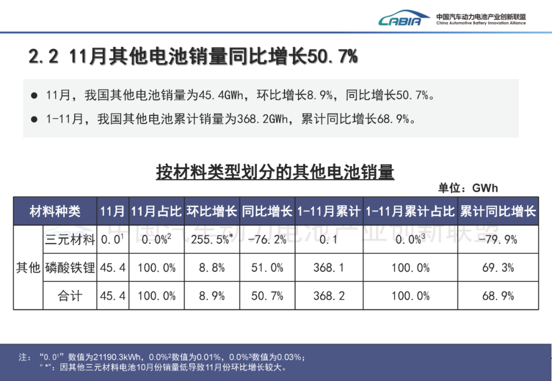 11月,我国动力和其他电池合计产量为176.3GWh,环比增长3.3%,同比增长49.2%。