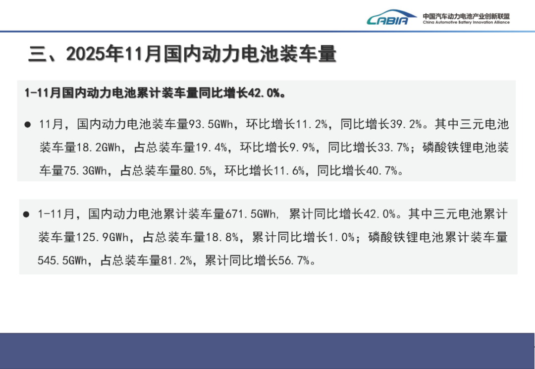 北极星储能网获悉,12月12日,中国汽车动力电池产业创新联盟发布2025年11月动力电池月度信息。