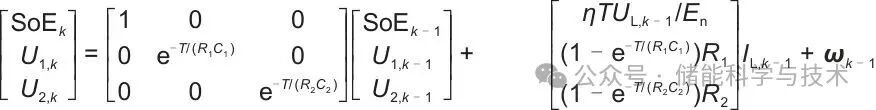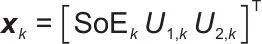将式(1)和式(2)离散化可得到电池系统的状态方程和观测方程为