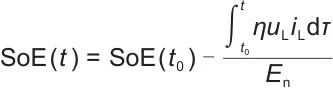 电池SoE定义为剩余能量与总可用能量的比值,与电流和端电压有关,表达式为