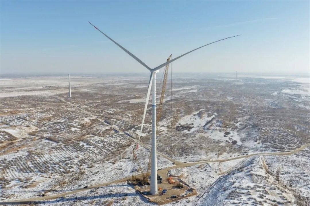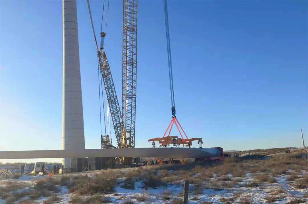 在机组吊装过程中,项目团队克服冬季低温、地形复杂等挑战,周密策划吊装方案,严格实施过程管控,最终顺利完成了首台机组的吊装。目前,项目团队正锚定总体目标任务,通过多个作业面并行施工、关键路径重点保障的方式,全力以赴推进工程进度,确保项目早建成、早投产、早达效。